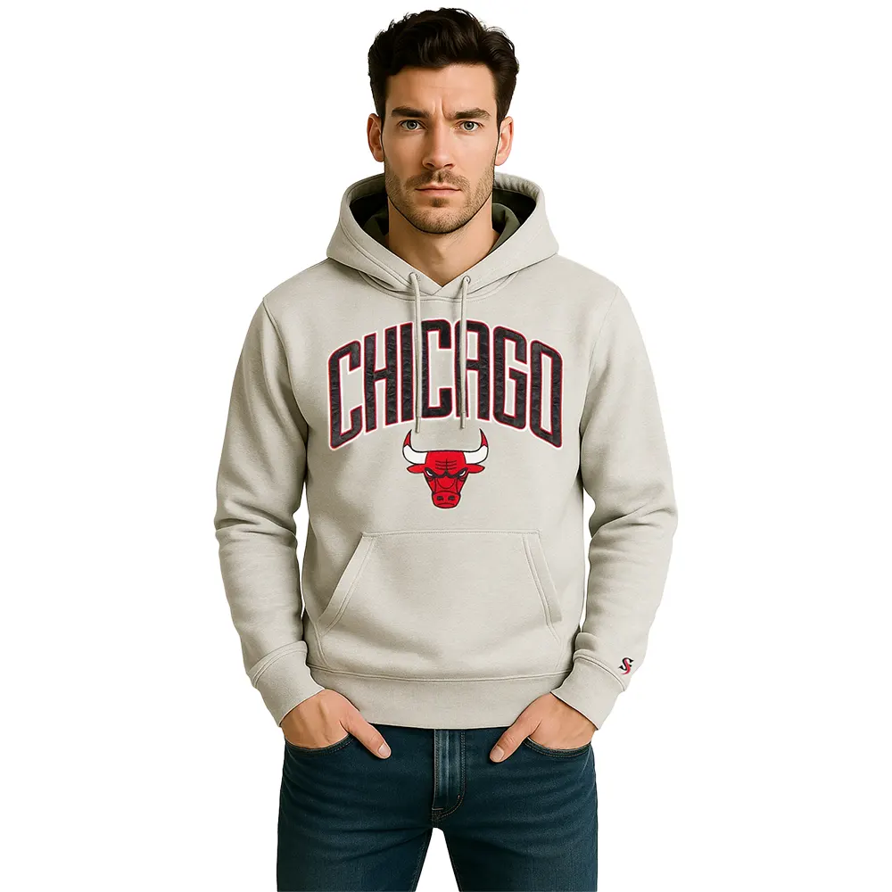 The draw of the gray pullover fleece hoodie is a clean and minimalistic look. The gray color is neutral with the background, and the Chicago Bulls brand does not overwhelm the design since it is not too bright. Such simplicity and detailing will make sure that the hoodie will be aesthetically pleasing and stylish.