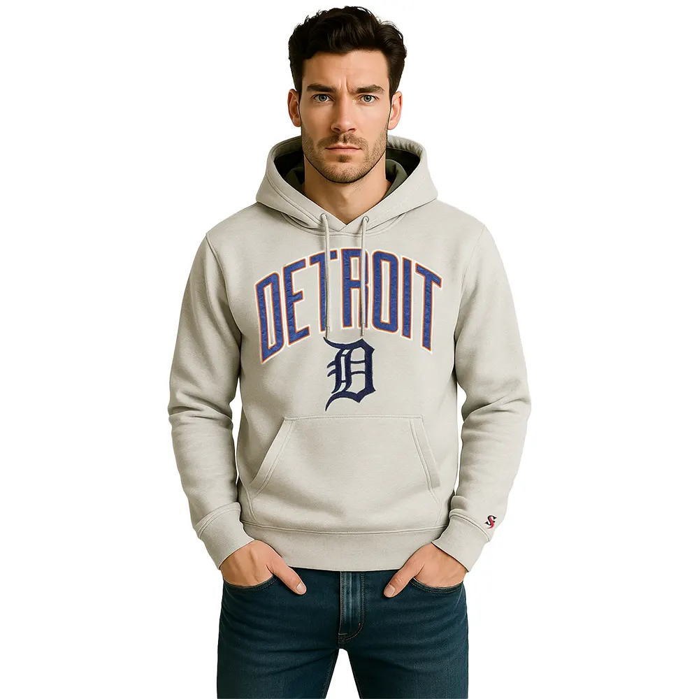 In general, the Detroit Tigers fleece pulloverhood is an item that combines minimalism and sophistication. Its clean lines, quality detailing, and a neutral tone allow using it in a variety of occasions and outfits.