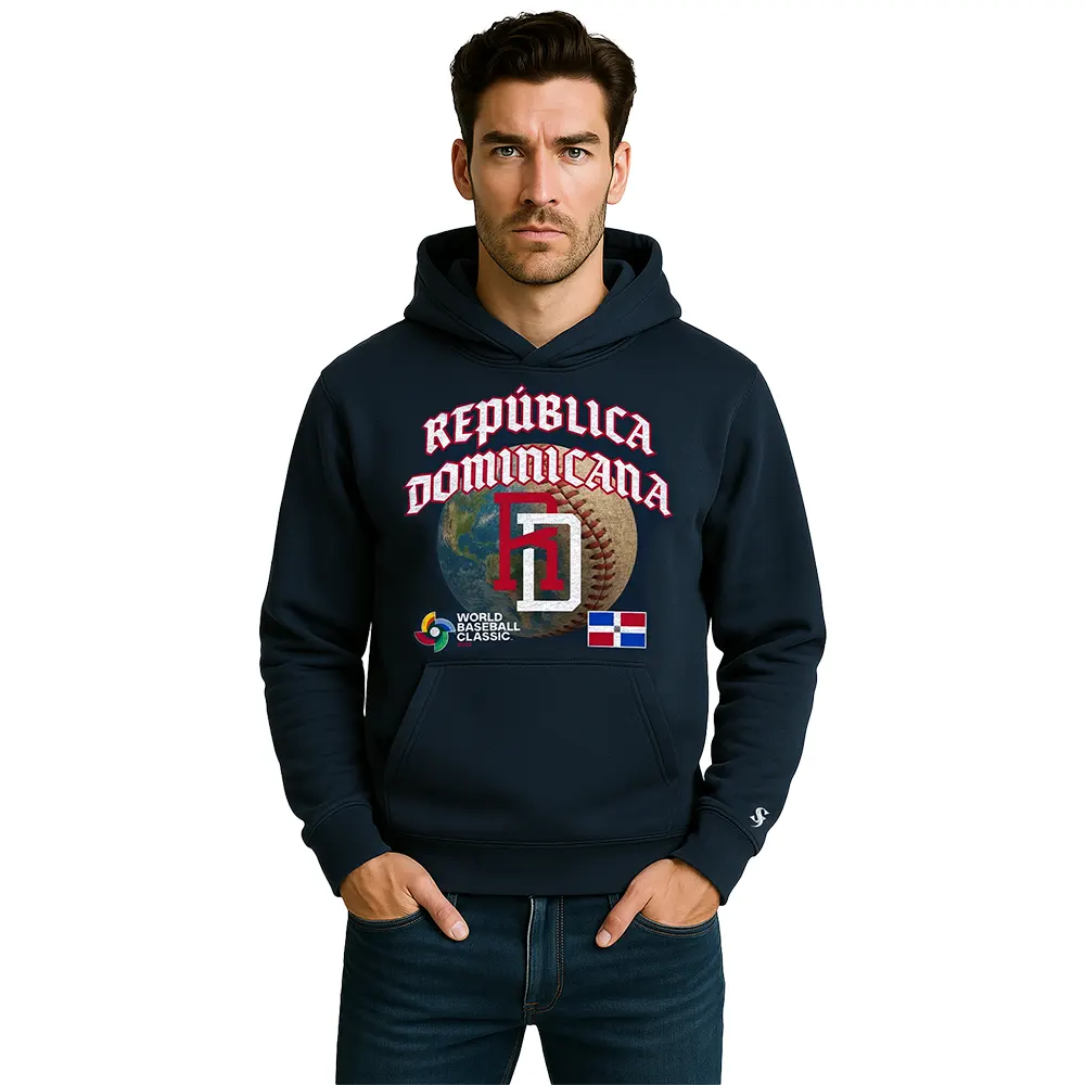 The Dominican Republic World Baseball Classic dark royal blue hoodie is a fashionable, practical and cross purpose product amongst the fans and the casual wearer. Its kangaroo pocket, its soft fleece interior and an adjustable hood give it warmth and utility at the same time expressing team pride.