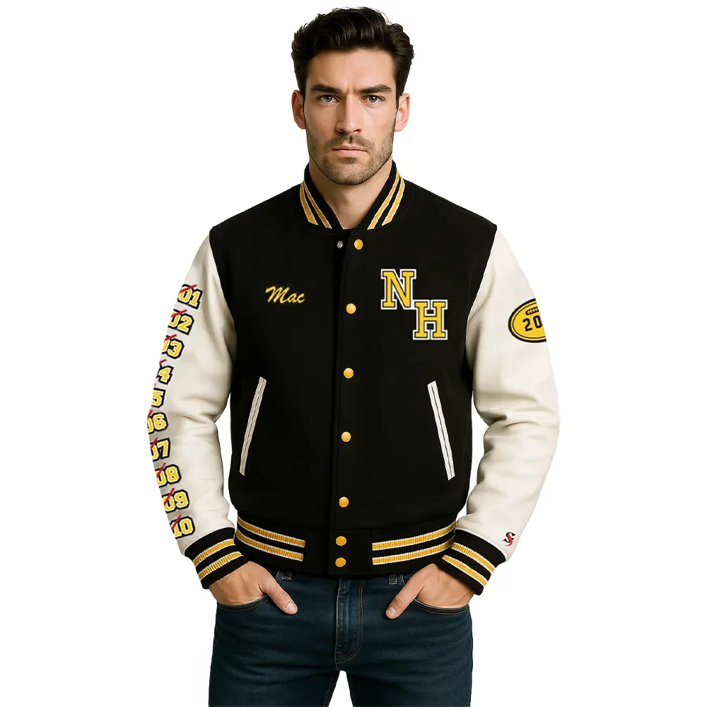 The N. Hale High School black and white varsity jacket that is worn by men is a high standard and stylish outer garment that is able to blend school spirit with comfort and athletic vintage styles. Its high quality material and embroidered decorations render it a perfect product to fans and students as well as alumni. This varsity jacket black and white can be worn on game days, during casual outings or as a part of a collection; nevertheless, it incorporates a tradition, loyalty, and classic sport inspired style.