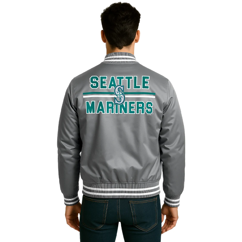 Mens Grey Varsity Seattle Mariners Satin Jacket