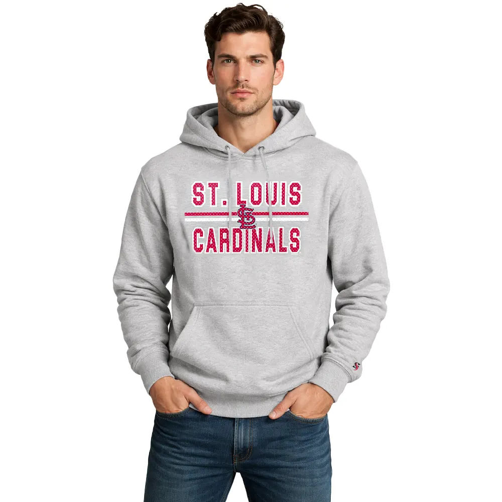 A The st louis cardinals hoodies combines mesh inspired texture, comfort, and clear team branding, creating a versatile and visually appealing garment.